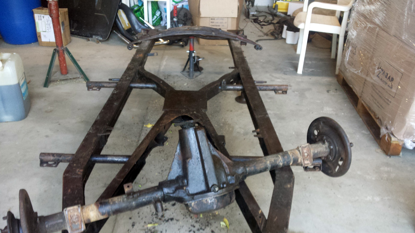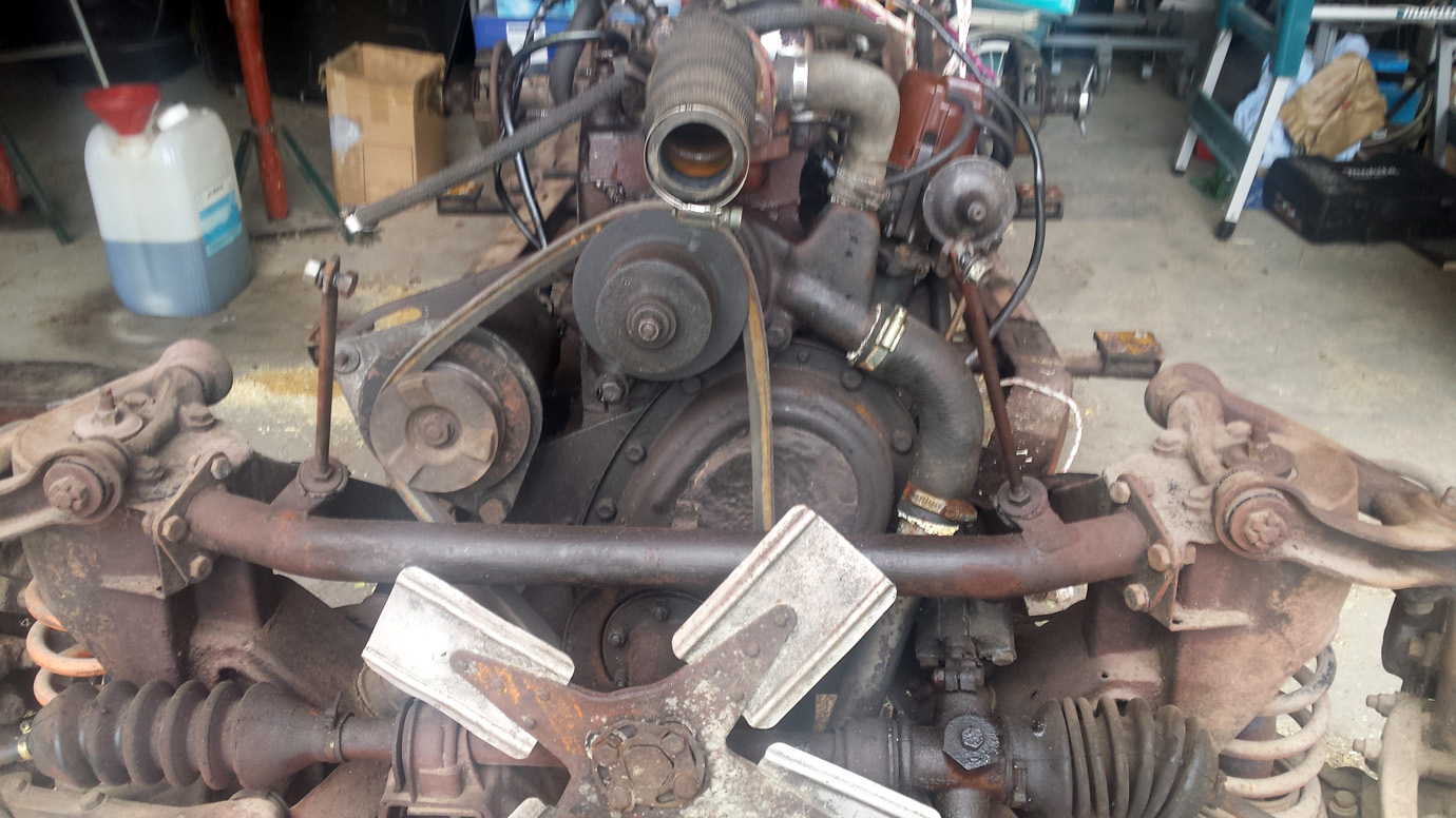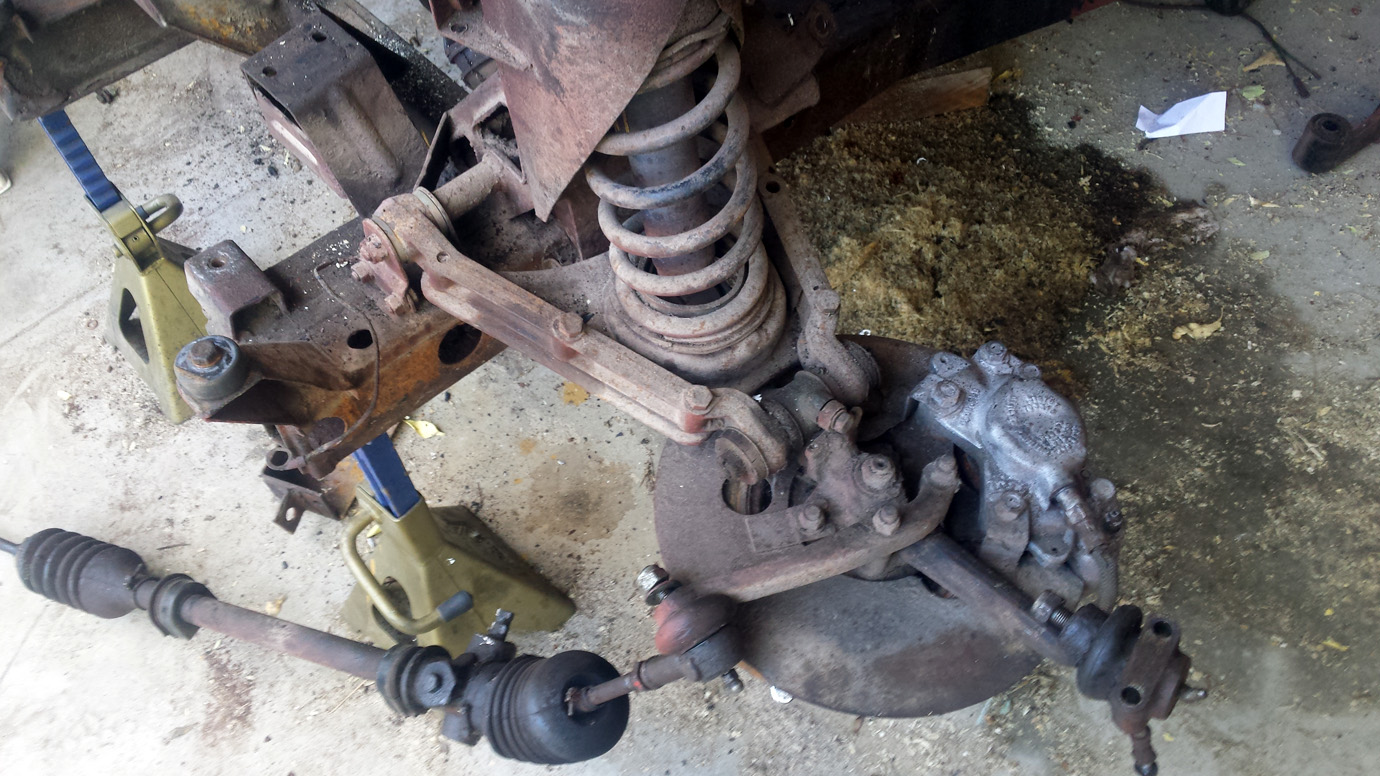 Puisqu’il faut tout démonter alors on démonte tout et aucun boulon ne casse. Les trains avant et arrière, la direction, les freins etc… sont mis en pièces (que je n’ais pas photographiés) et rangées dans des caisses.